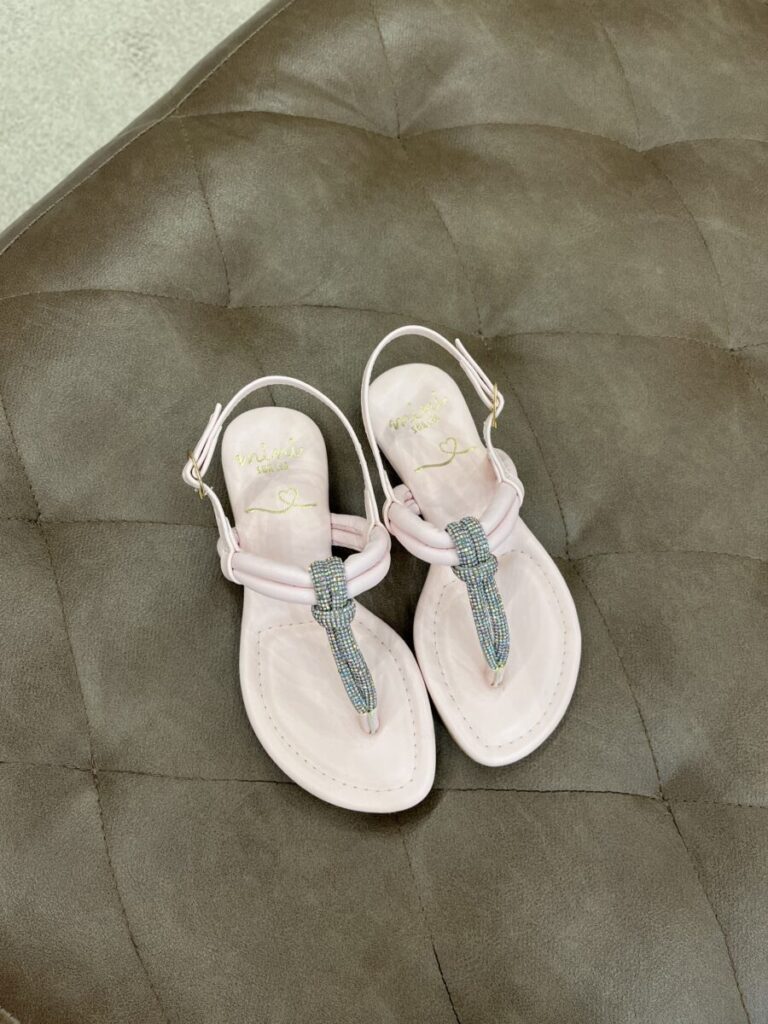 Rasteirinha rosa, com brilho infantil.