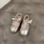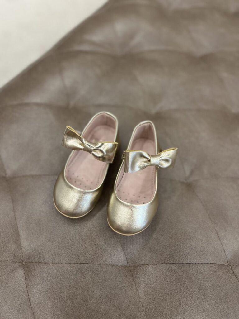 Sapatilha dourada com laço, infantil.